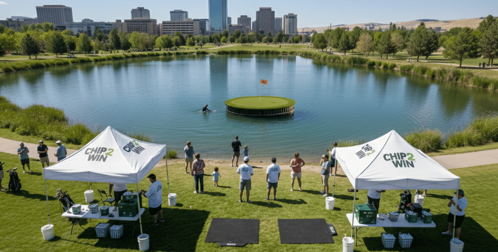 Welcome to Chip 2 Win, where we’re on a mission to make golf events more exciting, inclusive, and just plain fun. We took the classic hole-in-one contest and gave it a wild twist – a floating green challenge open to everyone! Whether you’re a scratch golfer or picking up a club for the first time, we invite you to come take a swing.